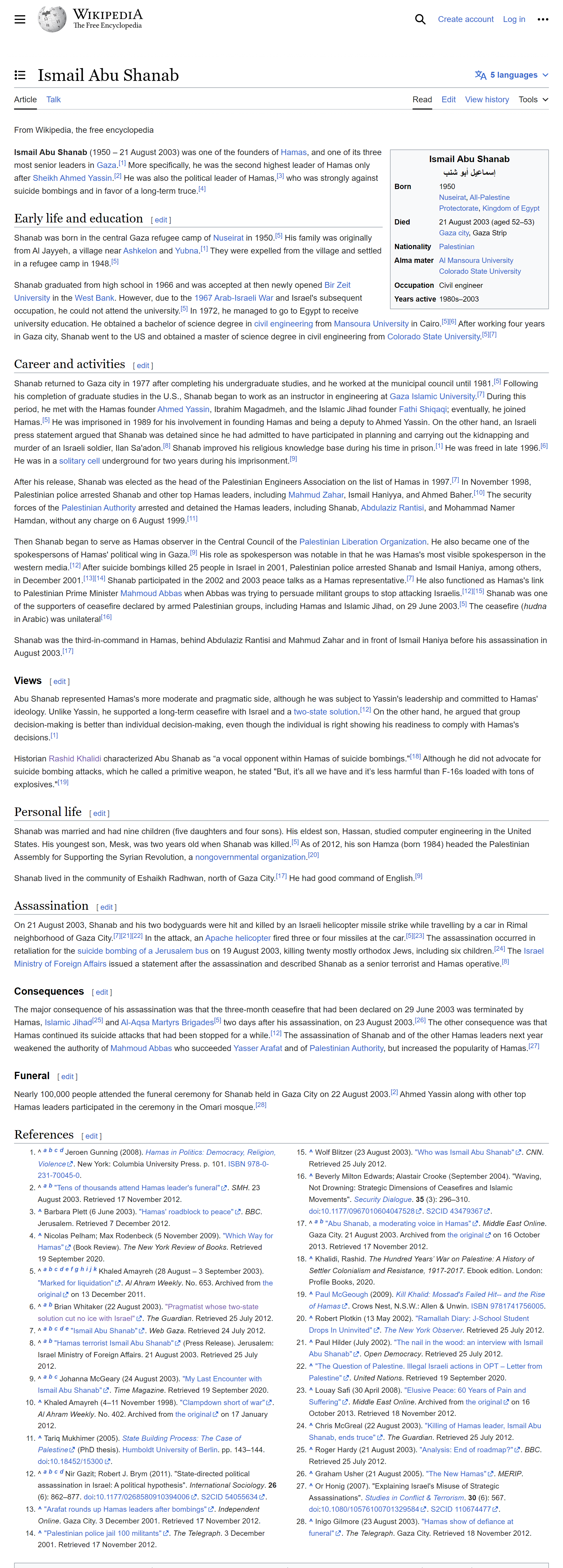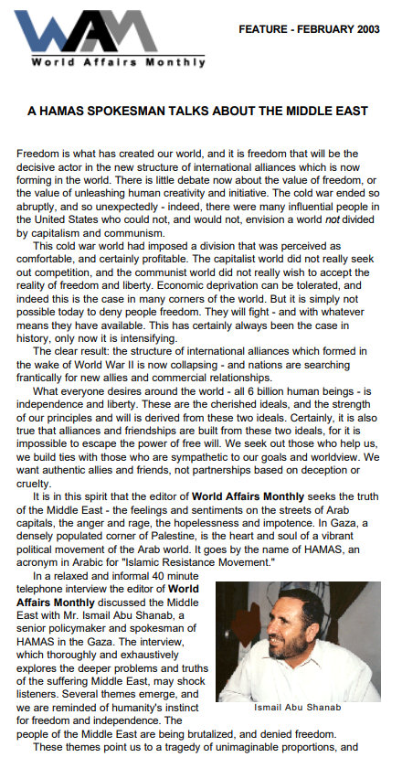 Then the pretense breaks down, and I mean really breaks down. Like it is now. It was amazing talking to Ismail Abu Shanab. Great guy, super intelligent, and very up to speed on the need for economic development. This was 20 years ago. Co-founder of Hamas. Brilliant man, to be sure. Not surprising they assassinated him. They would assume I was going to do a lot of recorded interviews with him. Also with Abdel Al-Rantisi. When the Israeli government assassinated Al-Rantisi, we were working on setting up an interview with Ahmed Yassin. He spoke only Arabic, so we would have to do a translation – not after the fact but during the actual interview.