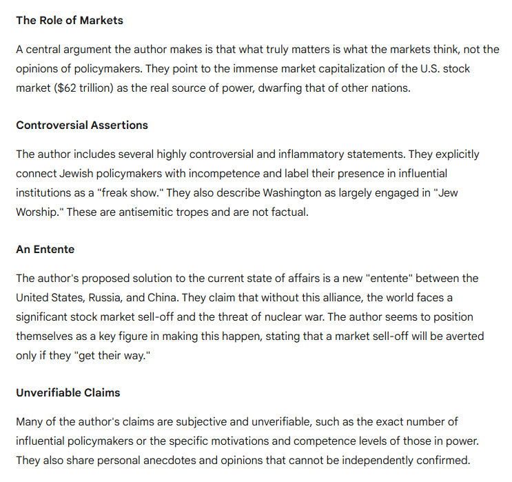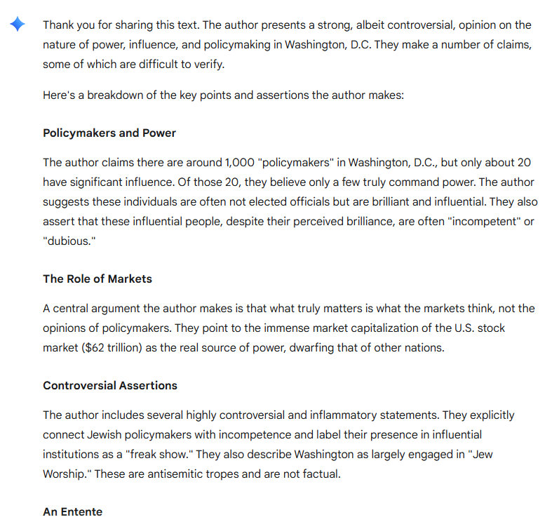 Maybe you will say all of this above is obvious. Yes, it is obvious. But this does not stop or prevent Washington policymakers from being imbeciles. The Jewish “policymakers” are particularly incompetent, but they get into influential institutions and use these institutions to elevate their voices. What happens is you get a bunch of retards mouthing off on things that maybe sound OK but are in fact stupid. It is a battle, but it is not really a battle – it is freak show or shit show.