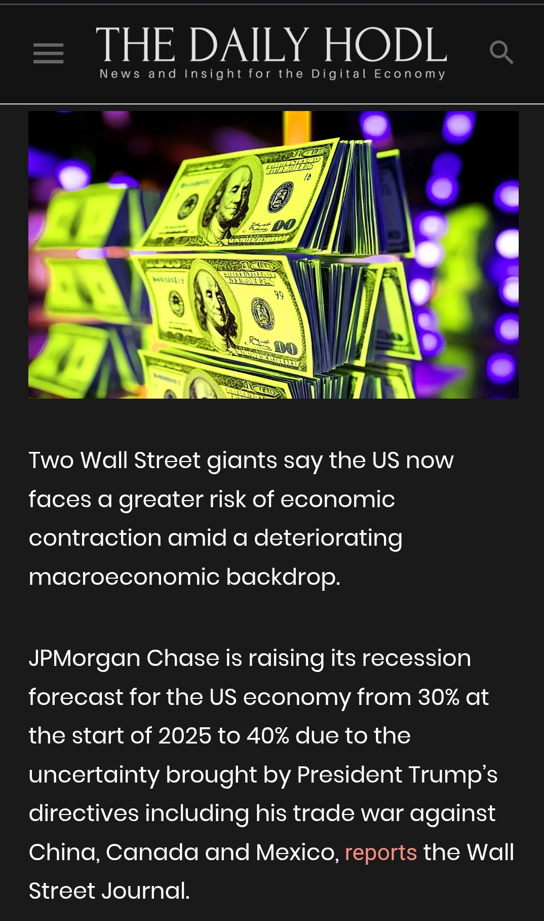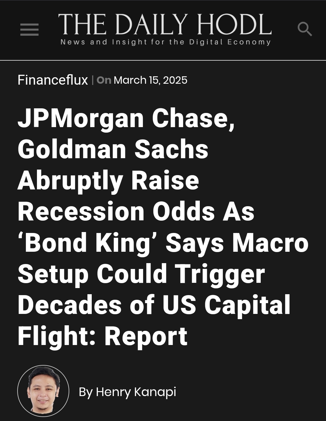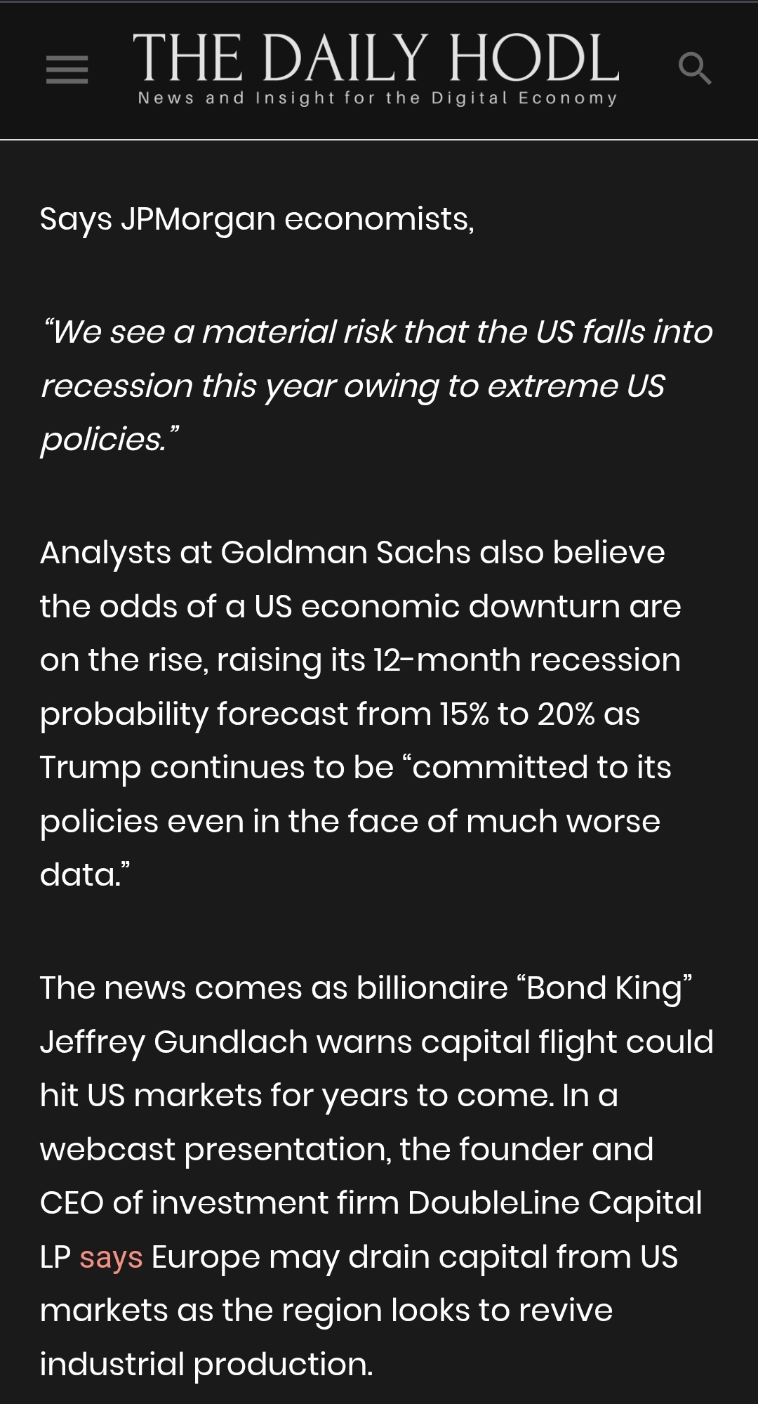 The big American banks recently put out statements about the risk of a recession. I will be blunt: the stock market is going to sell off, and it will not be pretty. It will sell off unless I am getting my way, unless the market knows that the entente I am proposing and designing becomes a reality.