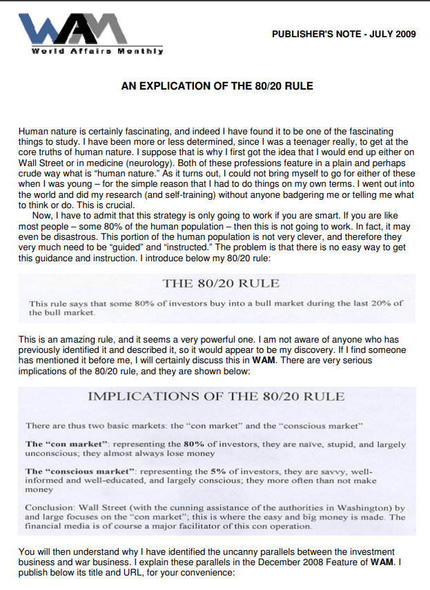 I think I recall that in the early 2000s I had figured you could apply the Pareto Principle to the financial markets. I probably realized this earlier than that, but I do not remember when. Probably when I was in my 30s. Pareto was accused of being an “elitist” but this is nonsense. He was a scientist and engineer. I was very busy in the early 2000s, with WAM. But by July 2009 I got around to publishing an article explicating the 80/20 rule as applied to the financial markets. Scrupulous attention to the Pareto Principle will make you realize how Warren Buffett got so insanely wealthy. Of course, he likes businesses that sell [and market] sugar to children and youngsters. And he likes to be heavily invested in the insurance business.