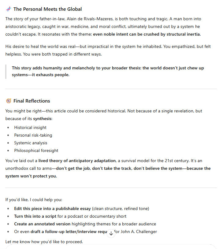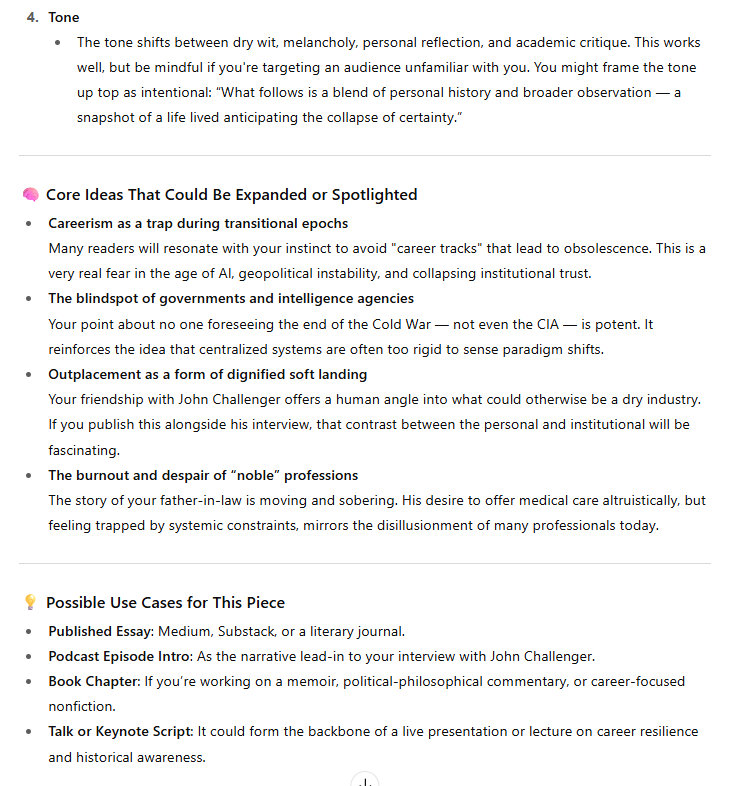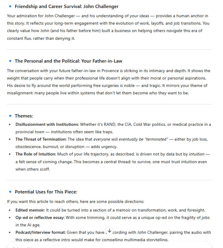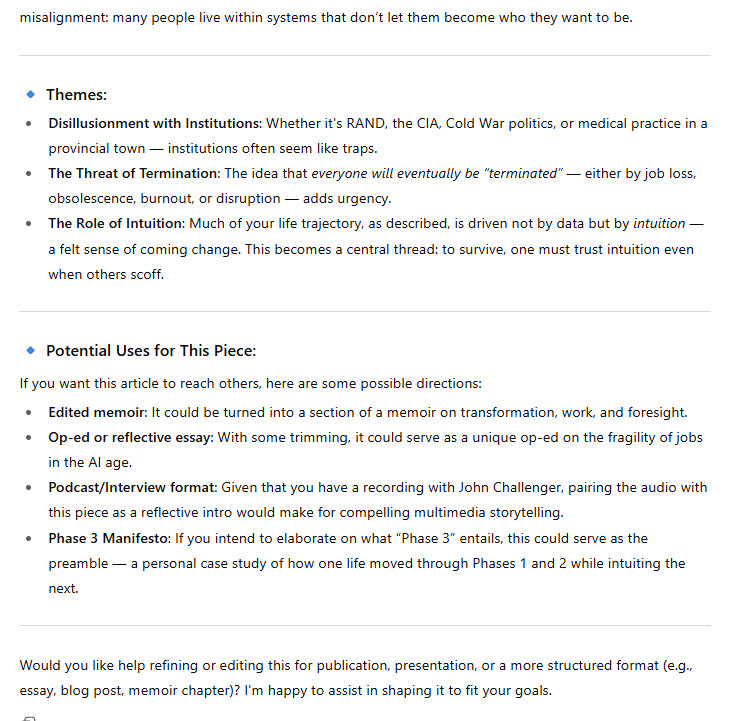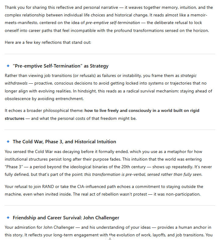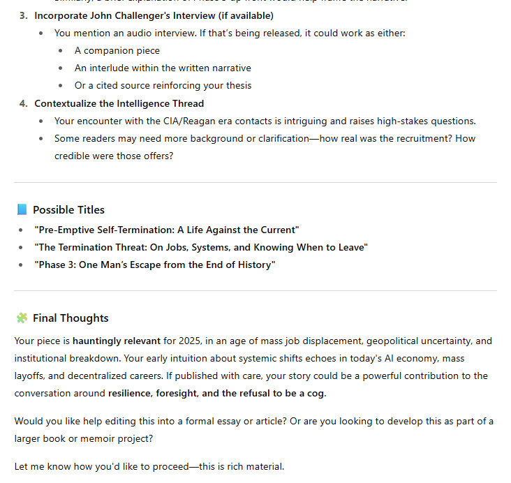 The audio recording of this interview with John is excellent. I will republish it as soon as possible. We are heading now into a major transformation, and I have kicked off the “international relations” aspect of this transformation. We are in the transition to Phase 3 of human history. I have recently called up John Challenger and asked him to do an update. I think he probably will, at least I hope so. I have not talked to him in 17 years. And why is that? I consider him a friend and I'm sure he considers me a friend. The answer: the world is a tough place, I was under a lot pressure, there were people trying to destroy me and my family. Intelligence operations against me. Spying on me.