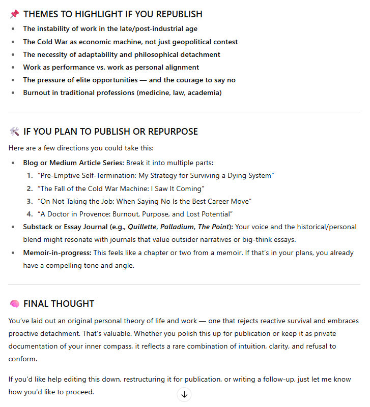 So I was undertaking an almost perpetual “pre-emptive self-termination.”