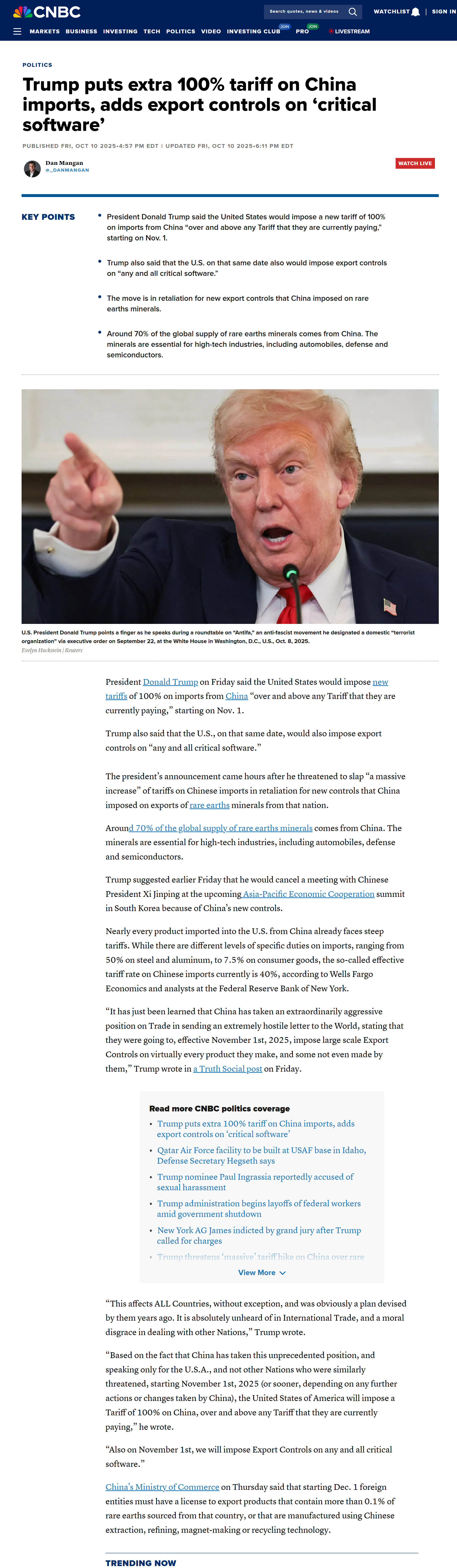 Then at about 11am Washington DC time [this past Friday] the idiot savant sent out a “message” on his stupid “Truth Social” saying that he is thinking of 100% tariffs on China, that China is very aggressive and a bad actor. I was not at all surprised by Trump's sudden mood change on China. Thursday morning I woke to find some interesting news – an email had arrived. I will not disclose the information in the email, but I will say that it was pretty important. So expecting Trump to let go a big fart on Friday morning his time is not at all surprising.