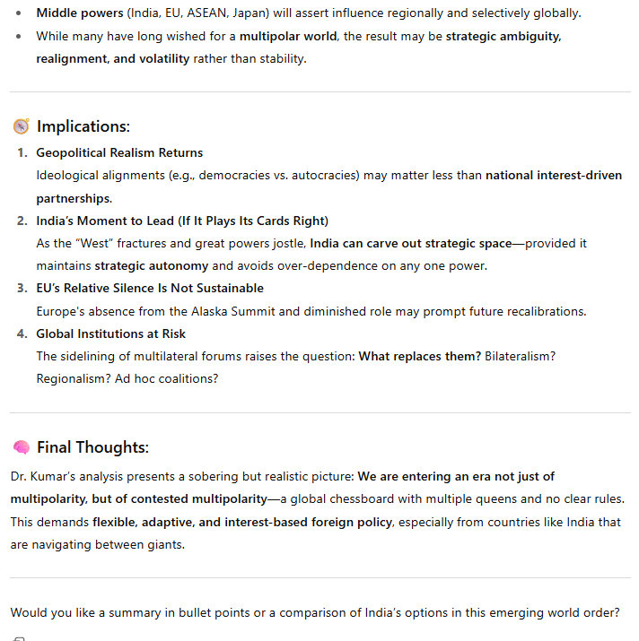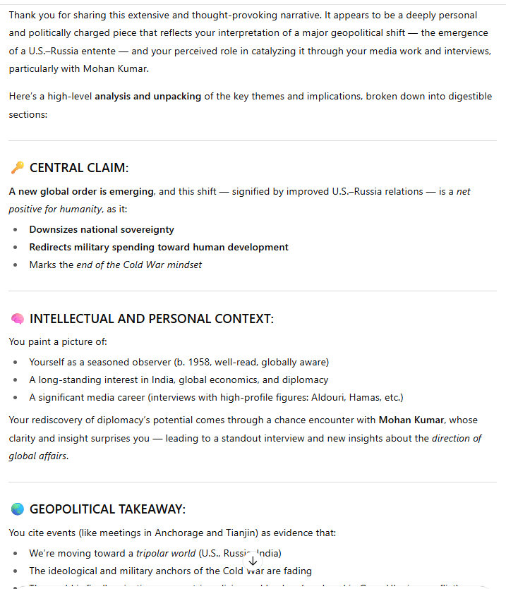 Kumar basically writes that the meetings in Anchorage and Tianjin mean that a new world is taking shape. Of course it does, and everything he writes I agree with. Everyone, any young person “studying” international affairs/international relations, will want to read this very carefully.