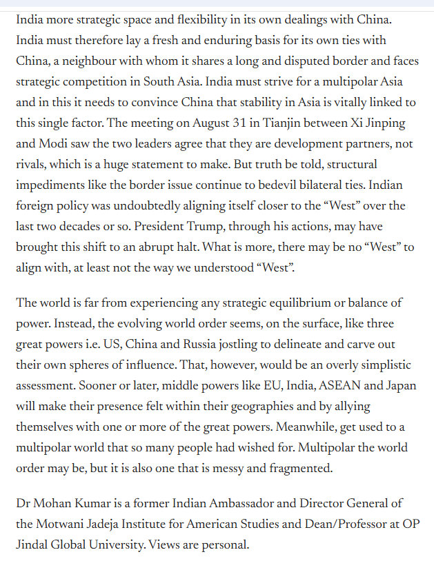 Kumar is no longer a high level functionary. He's an academic. So that's promising. What's good about a high level functionary is they have global experience. They have been around. They are not just your ordinary diplomat. Anyway, now I get to the main argument of this article. I apologize that it has taken so long, but I needed to explain the background.