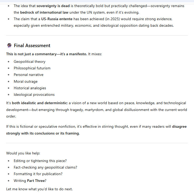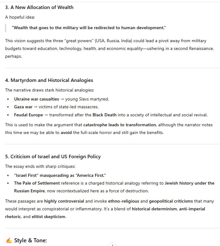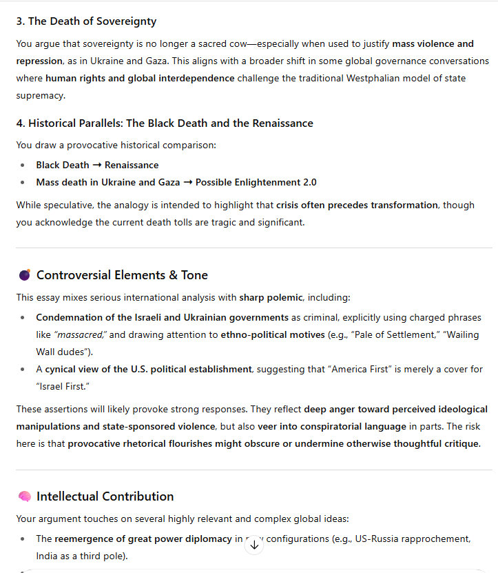 What is truly bizarre is that it is likely that we will not need a lot of suffering to get this achievement under way. Well, that's not really true, because there are many many martyrs. There are a million young Slavs dead, because of the stupid war in Ukraine. And there are hundreds of thousands of dead in Gaza, massacred by the Israel government. That's why I say that sovereignty is finished. The Israeli government is criminal, and so is the Ukraine government. There is no justification for this kind of killing. And killing on this scale. I have argued who is behind this killing. Yes, we all know who it is. Pale of Settlement. The Pale of Settlement just never gives up its menacing destruction of civilization.