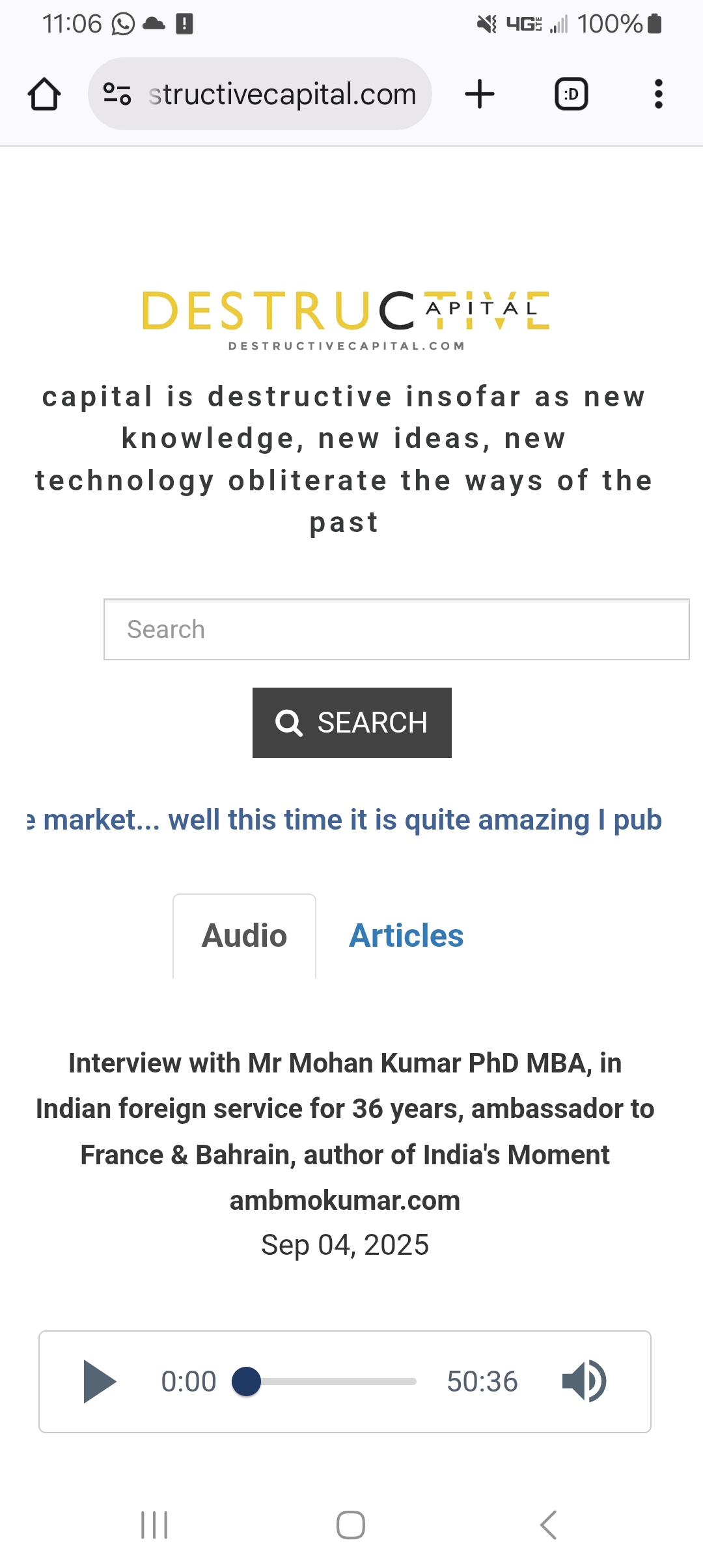 I did my normal research on him, and found that he was India's ambassador to France [and to the United Nations], and that he had a PhD from Sciences Po in Paris. Amazing. I was kind of stunned, as I said, I normally do not get too excited about anything. I worked a little hard on the questions, meaning that I was not going to do just an ordinary job on this. You will see my questions below, as I said. They are pretty tough, and I think they are excellent. So we did the interview. I published it at destructivecapital.com.