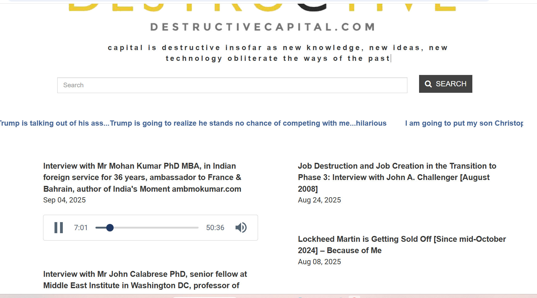 It was outstanding. I have done some 500 of these interviews since 2002, and this is one of the most interesting, definitely very high quality. It probably ranks among the top 25 interviews I have done. Of course, the problem is I have forgotten many of my important interviews; my interview with Muhammad Aldouri PhD, Saddam Hussein's ambassador at the United Nations, was excellent. My interviews with the founders of Hamas were excellent. There were lots of really good ones, but the Kumar interview does stand out.