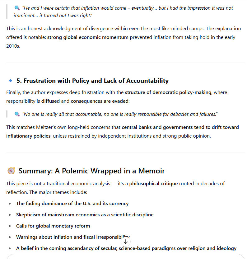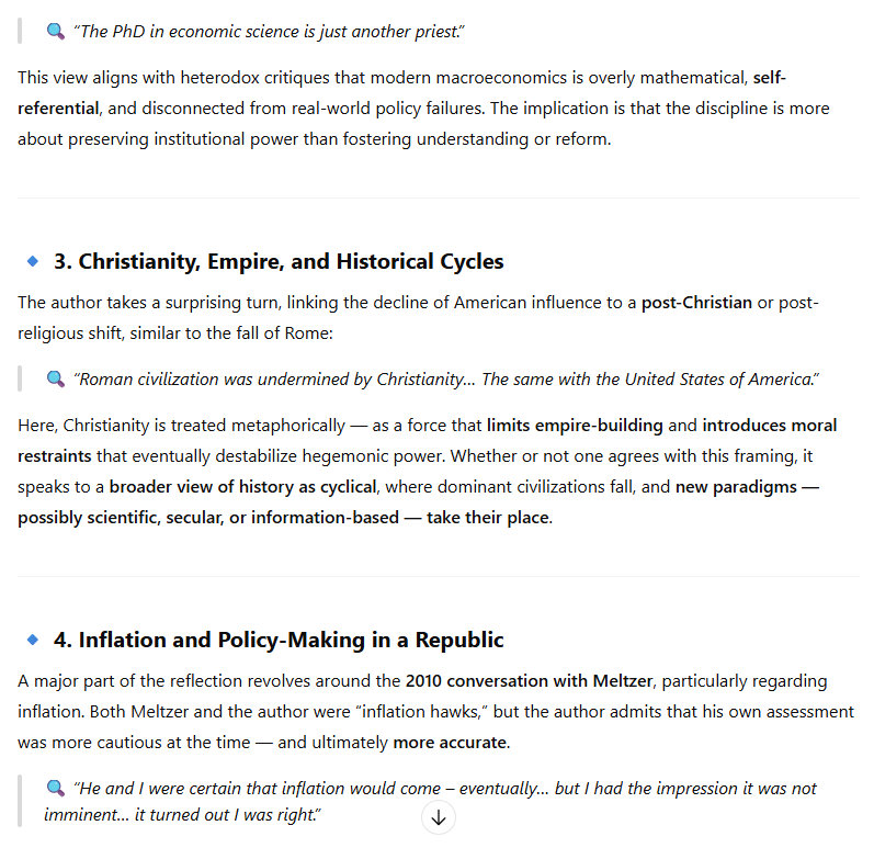 Anyway, “economic science” is dubious, as I have argued. I was not going to join the priesthood, not a chance. All I did was make a serious effort to understand the realities of “economic science” and it seems Allan Meltzer appreciated that. I will republish the audio recording of this 2010 interview with Allan Meltzer as soon as possible.
